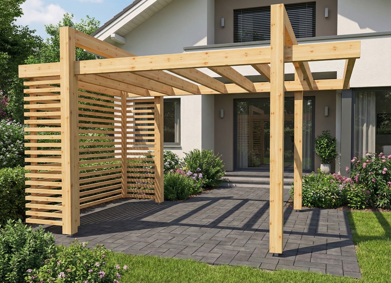 Altana ogrodowa – pergola 3×3 jako nowoczesna konstrukcja w ogrodzie.