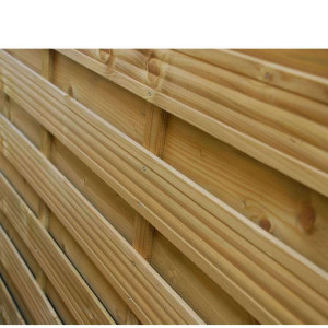 Standardowe zabezpieczenie drewna wykonywane jest za pomocą impregnacji próżniowo-ciśnieniowej w której stosujemy ekologiczny, bezchromowy środek TANALITH E. Impregnacja ciśnieniowa zabezpiecza drewno głęboko w swoim przekroju nadając lekkie zabarwienie, początkowo zielone, a pod wpływem promieni słonecznych, po kilku tygodniach nabiera ciepłej, oliwkowej barwy, która stopniowo, w ciągu kilku lat zmienia się w barwę srebrno szarą. Zaimpregnowane drewno można dodatkowo malować dowolnym środkiem impregnującym lub koloryzującym.