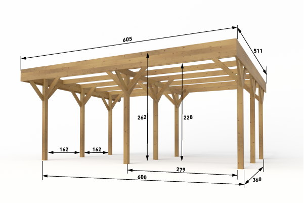 Rozstaw skrajnych słupów 600×360 cm zapewnia dużo przestrzeni dla dwóch aut.