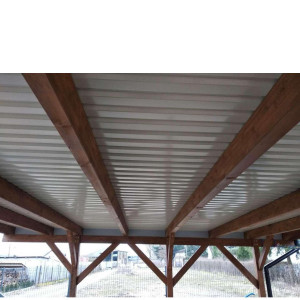 Ściany wiaty mogą być wypełnione panelami osłonowymi, kratkami lub ścianą z deski pióro-wpust w uzgodnieniu z klientem.