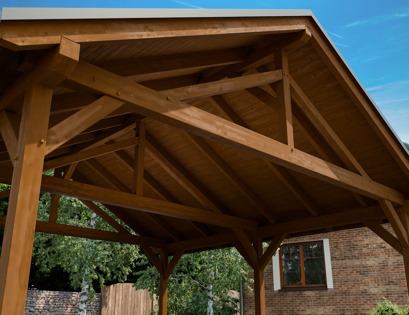 Konstrukcja wykonana na połączenia ciesielskie, które znacznie wpływają na stabilność i usztywnienie konstrukcji, jak również na łatwość montażu.