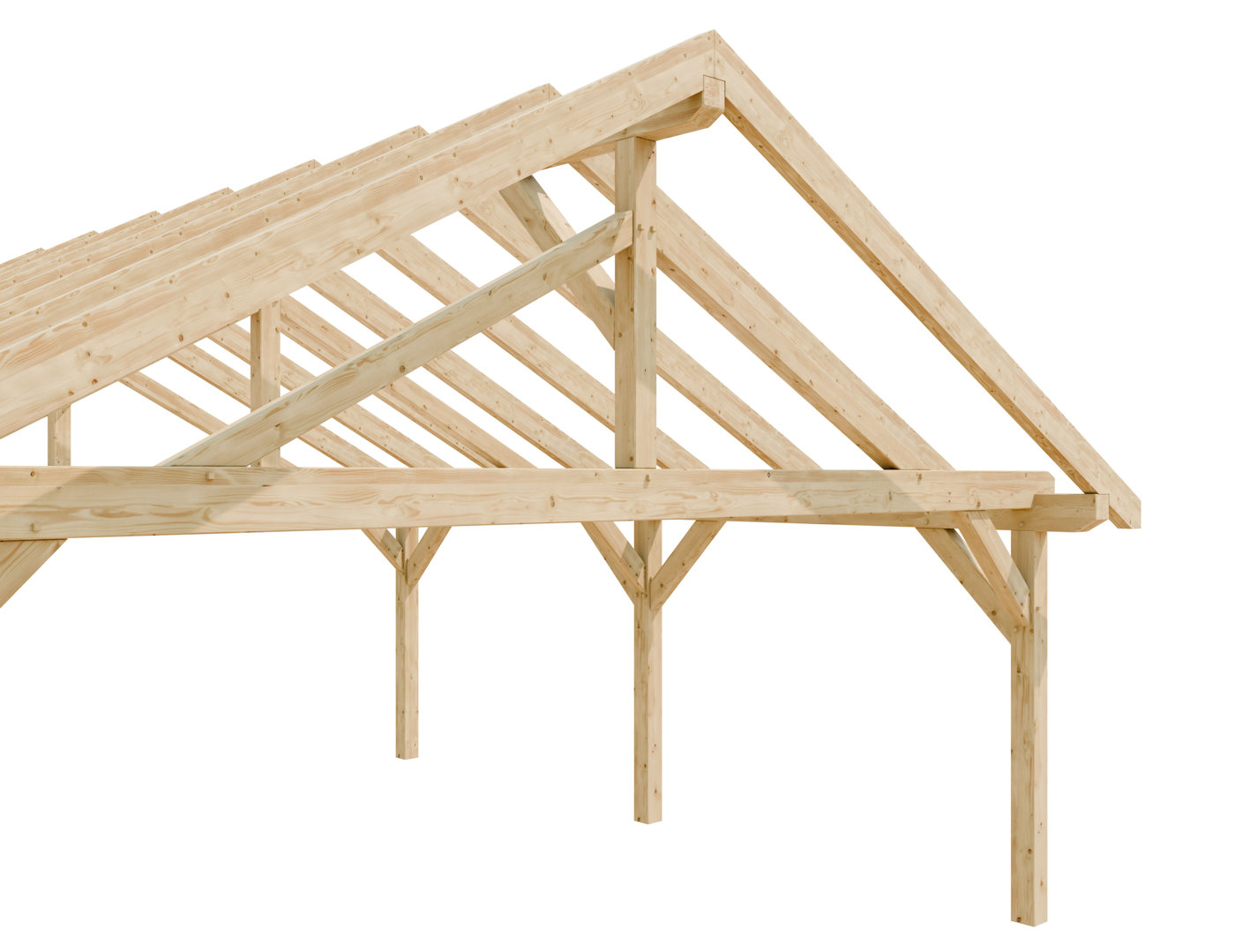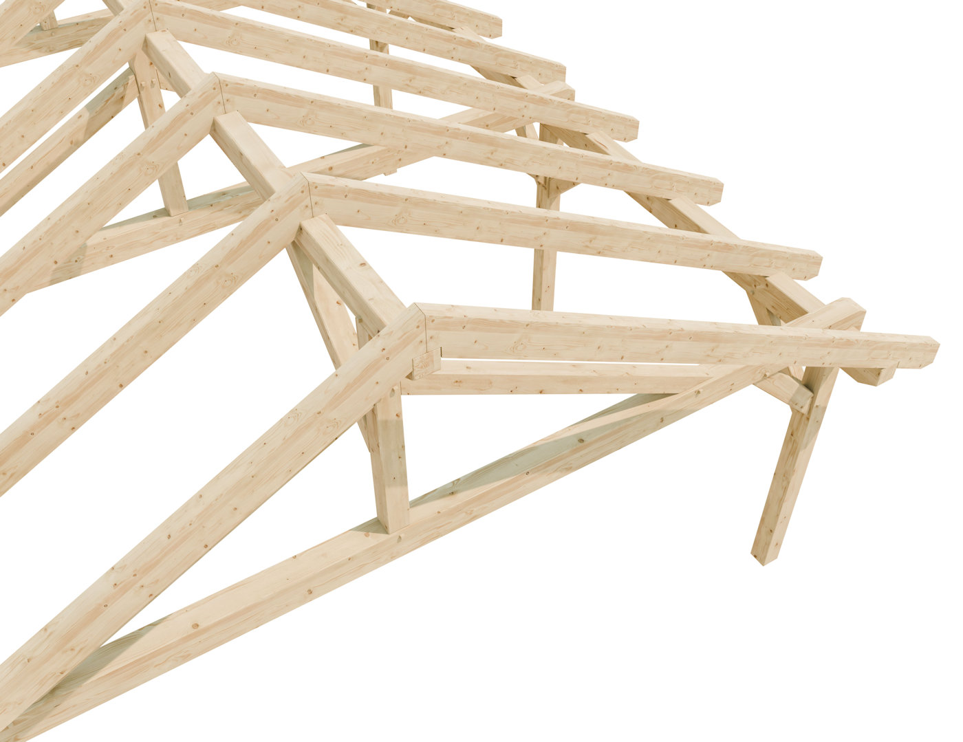 Wszystkie elementy wykonane są z drewna klejonego warstwowo(BSH), które jest znacznie sztywniejsze i wytrzymalsze od drewna litego.