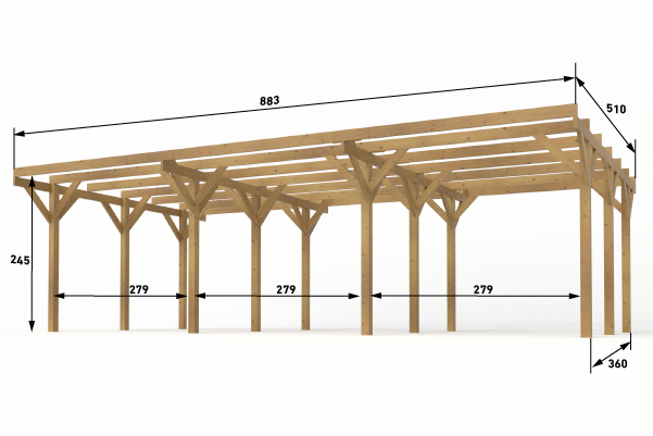 Wiata drewniana 3-stanowiskowa 1spadowa 889×512 cm