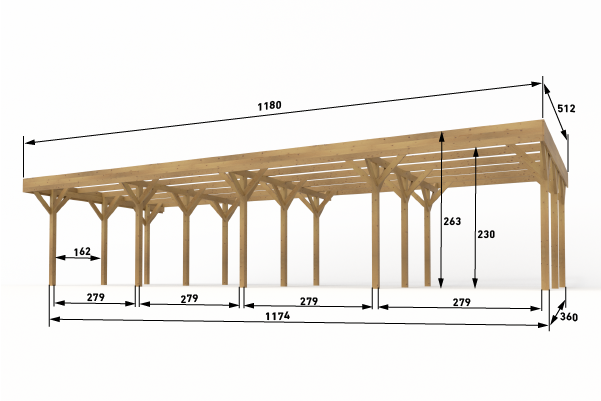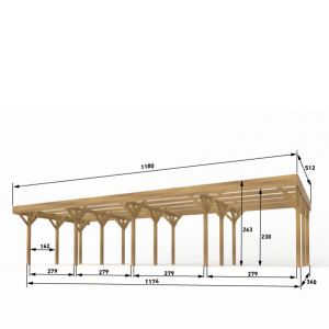Wiata drewniana 4-stanowiskowa 1spadowa 1180×512 cm