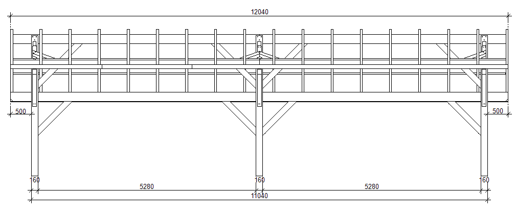 Wiata garażowa 4-stanowiskowa 2spadowa 1104×381 cm BSH