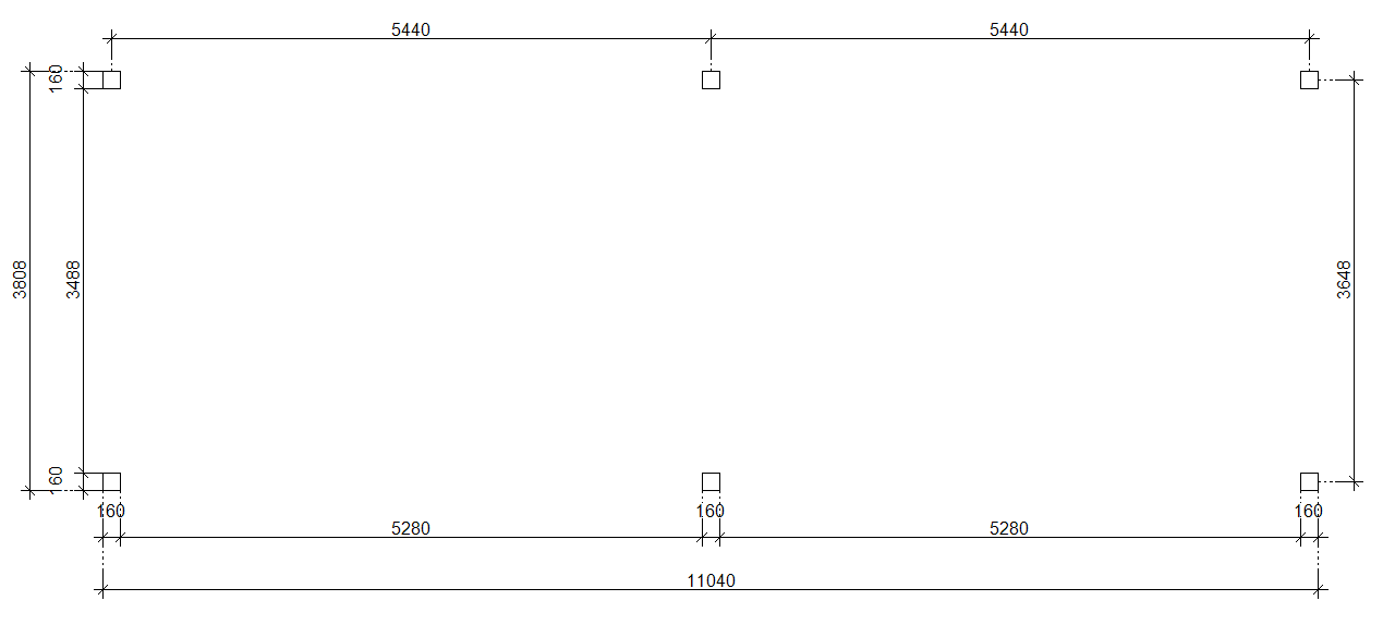 | Rozstaw słupów zewn. dł. x szer. | 1104 x 381 |
