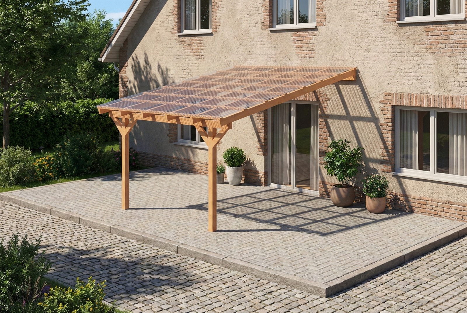 Najlepiej sprawdzi się pokrycie przezroczystymi płytami z poliwęglanu komorowego ale również dowolnymi płytami falistymi lub trapezowymi.