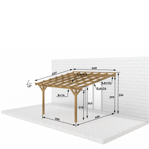 Zadaszenia tarasu z dachem 1 spadowym, prostym o szerokości 400 cm – rozstaw słupów, w długościach standardowych od 300 do 800 cm.