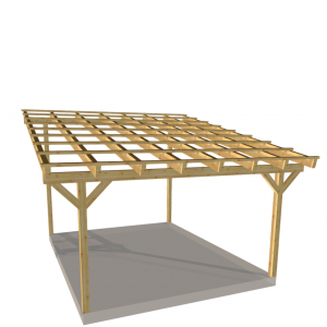 Zadaszenia tarasu z dachem 1 spadowym, prostym o szerokości 500 cm – rozstaw słupów, w długościach standardowych od 300 do 800 cm.