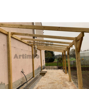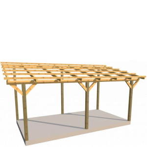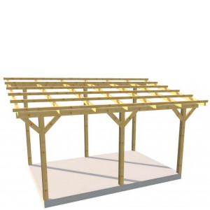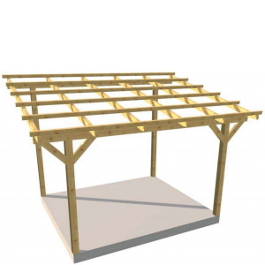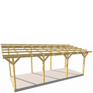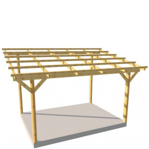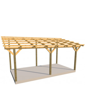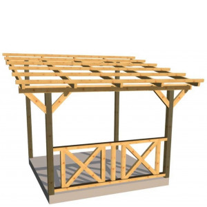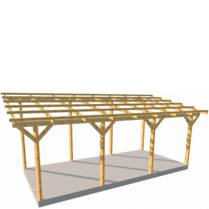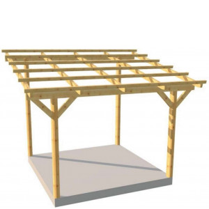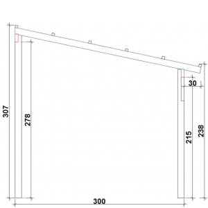 Zadaszenie tarasu z dachem 1 spadowym, prostym o szerokości 300 cm – rozstaw słupów, w długościach standardowych od 300 do 800 cm.