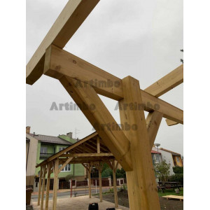 Wszystkie elementy wykonane są z drewna świerkowego suszonego do wilgotności 12-15% i klejonego warstwowo(BSH).