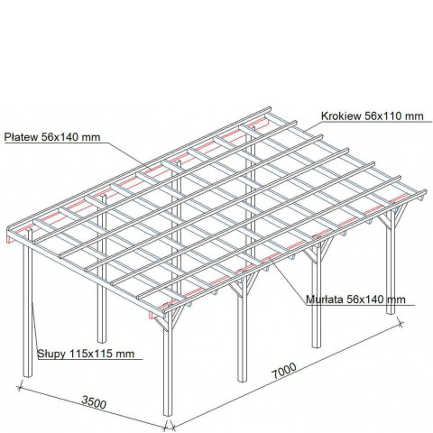 Wszystkie elementy wykonane są z drewna świerkowego suszonego do wilgotności 12-15% i klejonego warstwowo(BSH).