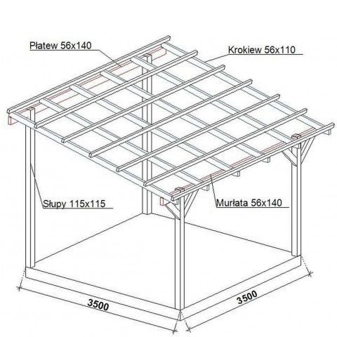 Konstrukcja nie zawiera pokrycia dachowego i elementów kotwiących do ściany i posadzki.
