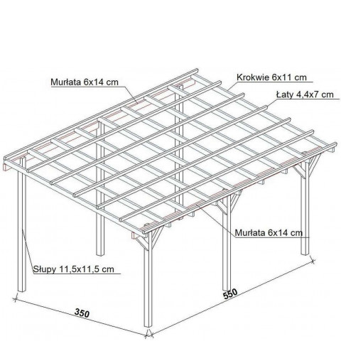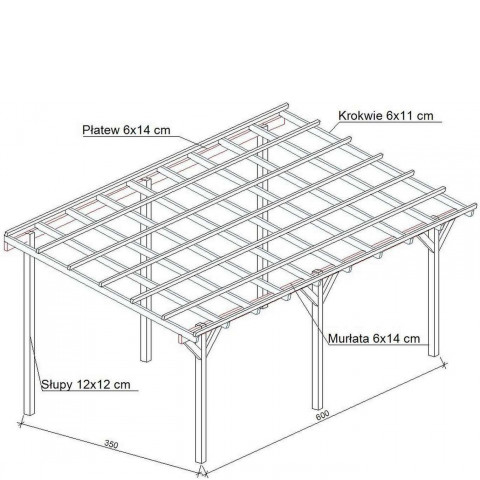 Zadaszenie tarasu szerokość 350 cm długość 600 cm