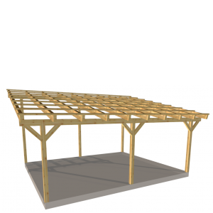Zadaszenia tarasu z dachem 1 spadowym, prostym o szerokości 500 cm – rozstaw słupów, w długościach standardowych od 300 do 800 cm.