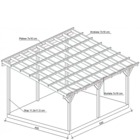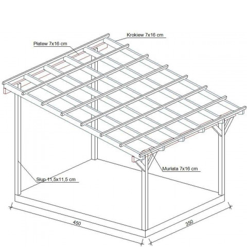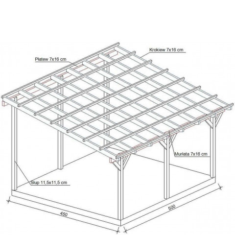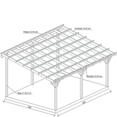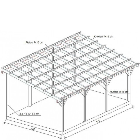 Konstrukcja nie zawiera pokrycia dachowego i elementów kotwiących do ściany i posadzki.