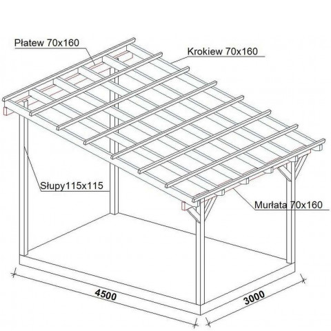 Wszystkie elementy wykonane są z drewna świerkowego suszonego do wilgotności 12-15% i klejonego warstwowo(BSH).