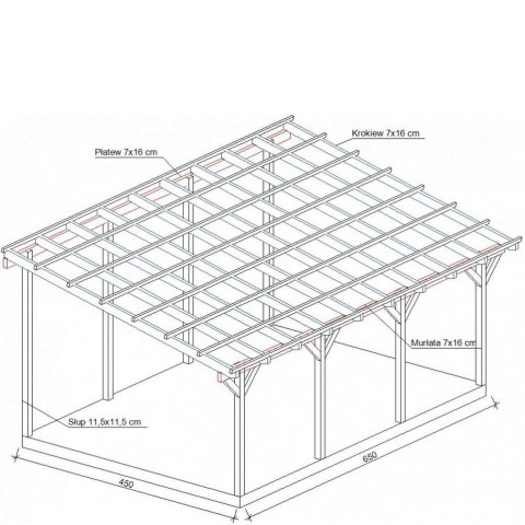 Zadaszenia tarasu szerokość 450 cm długość 650 cm