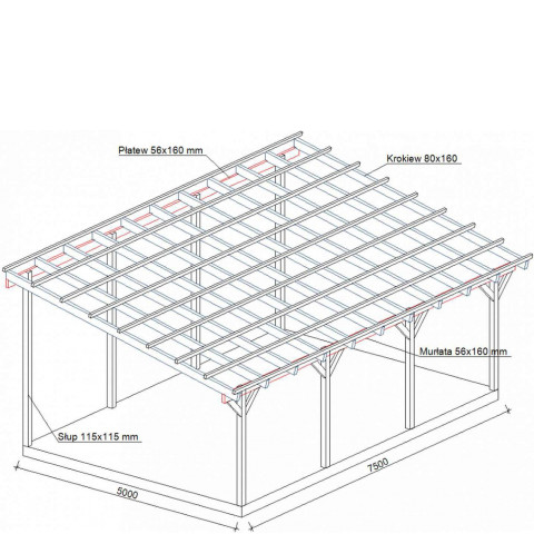 Wszystkie elementy wykonane są z drewna świerkowego suszonego do wilgotności 12-15% i klejonego warstwowo(BSH).