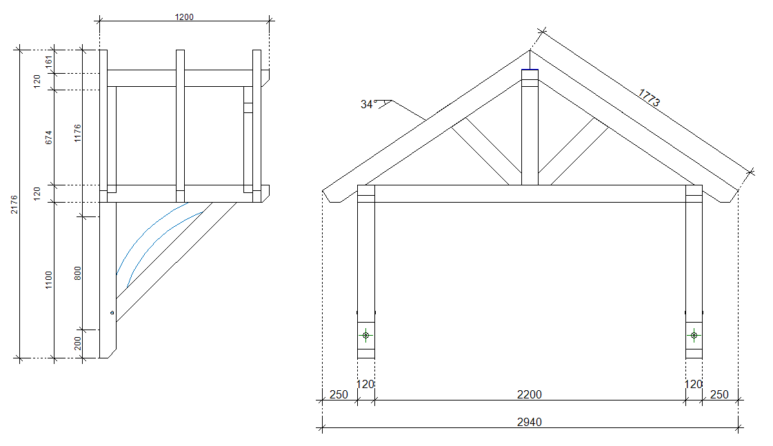 Zadaszenie wejścia dwuspadowe – przejście 160 cm